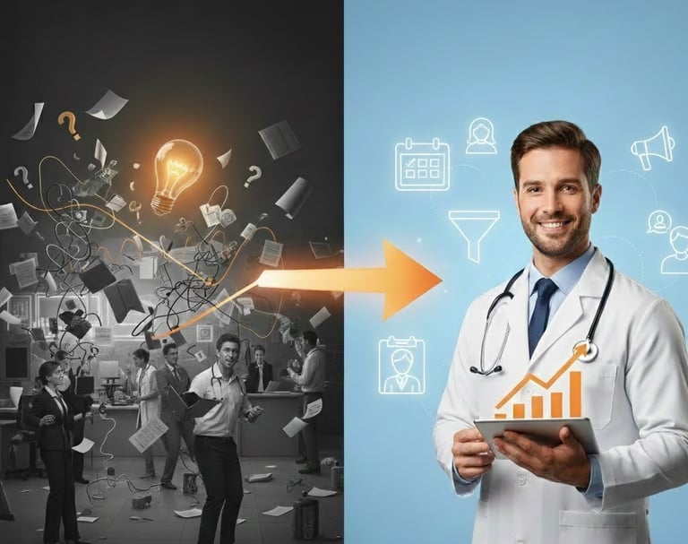 Ela elimina o caos, controla o fluxo de pacientes e tira você do operacional em três passos simples.